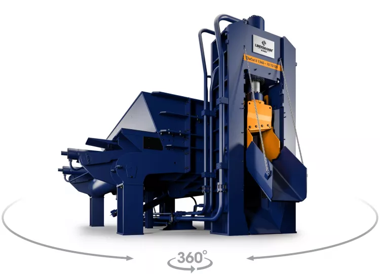The system integrates a high-force press lid, parallel-guided side compactor and robust pusher, to form dense scrap before cutting with guillotine blades. Optimised press lid kinematics ensure maximum compaction force exactly where it is needed, while overstroke functionality increases density and reduces wear. A vertically operating stamper provides additional compaction and stabilisation during cutting. Heavy forged blade tables absorb cutting forces, protecting the overall structure and extending service life.